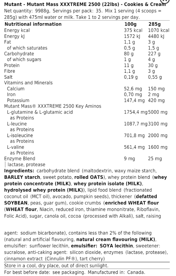 Mutant MASS is a new and improved version of the world's most popular mass gainer Mutant MASS is designed for those who train hard and whose goal is to grow significantly more muscle mass. A whopping...