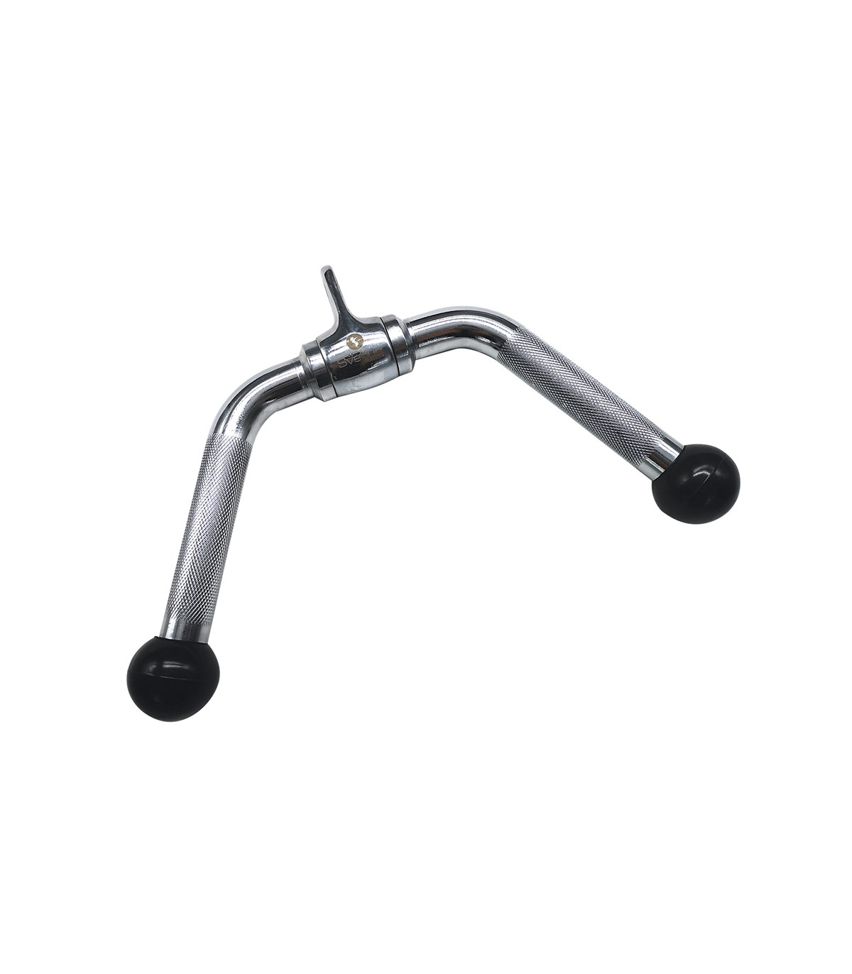 For cable or pulley machine. Enables mainly the triceps, but also the work of other muscle groups thanks to the different holding options. Round surface for better grip.
