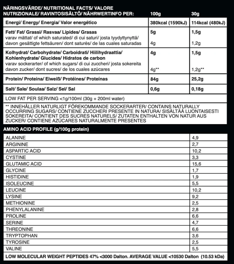 Annostus: Sekoita 30g jauhetta haluamaasi määrään nestettä ja nauti ennen, aikana tai jälkeen harjoittelun.