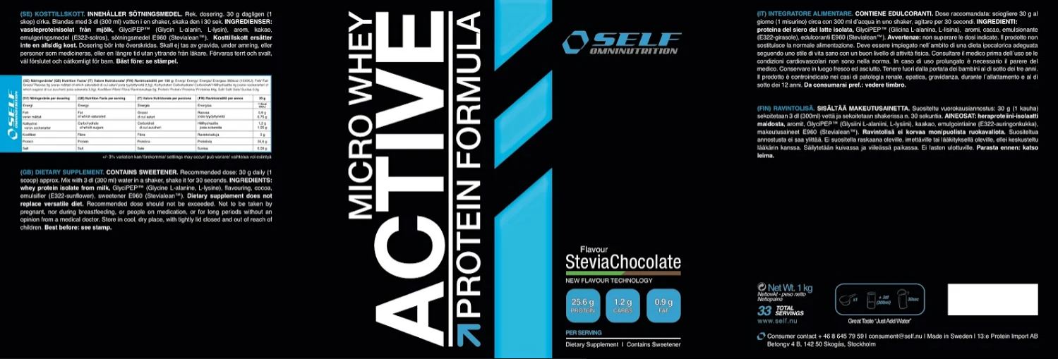 Self Omninutrition Micro Whey Active Stevia herkullinen ja hyvin sekoittuva heraproteiini-isolaattijauhe