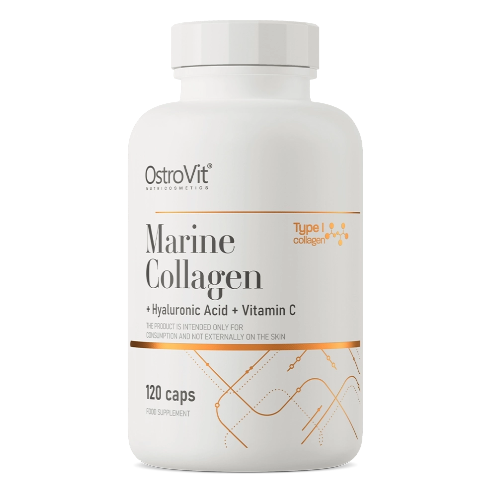 Marine Collagen with Hylauronic Acid and Vitamin C on OstroVit valmistajan korkealaatuinen ravintolisä tukemaan sinun päivittäistä hyvinvointia. Tämä tuote on erityisen suotava urheilijoille sekä niille ihmisille jotka haluavat pitää huolta nivelten, kynsien, ihon jne. voinnista. Kollageeni on tärkeä proteiini jolla on merkittävä rooli esim. ihon terveydelle ja siihen lisätty c-vitamiini tukee ihon omaa kollageenin tuotantoa, näin tarjoten paremman täysivaltaisen tehon. Kätevästi kapselimuodossa joka on helppo niellä veden kanssa.
