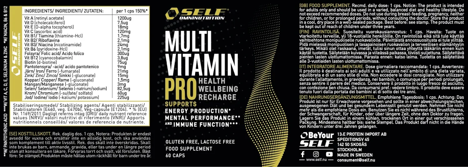 Self Omninutrition Multivitamin korkealaatuinen monivitamiini-ravintolisä tukemaan hyvinvointiasi