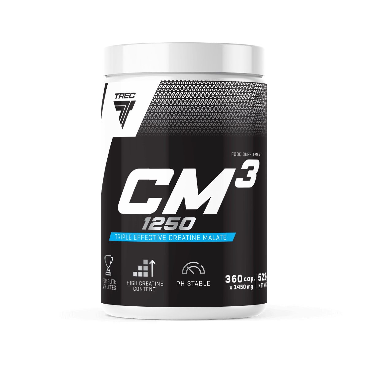 CM3-lisäravinne sisältää puhdasta tri-kreatiini-malaattia joka on ainutlaatuinen kreatiinin muoto jossa kreatiinimonohydraatin molekyylit ovat sidottu omenahappoon. Näin imetymisestä saadaan entistä nopeampaa ja tehokkaampaa. Kreatiini parantaa fyysistä suorituskykyä korkean intensiteetin harjoittelussa. Tri-kreatiini-malaatti soveltuu kaikille jotka haluavat parantaa fyysistä suorituskykyä sekä voimaa.