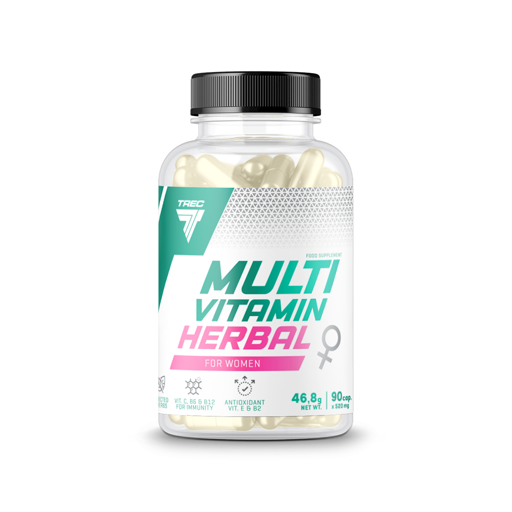 Multivitamin Herbal for Women är ett kosttillskott som kombinerar ett brett utbud av vitaminer och örter med fokus på kvinnans behov. I detta TREC-multivitamin hittar du t.ex. vitaminerna E, C, B6 och B12 samt druvkärnextrakt. Vitamin C, B6 och B12 främjar immunsystemets normala funktion. Produkten har utvecklats för tränande kvinnor som önskar få ut mer av sitt multivitamin.