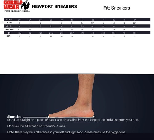 The comfortable Newport Sneakers are everyday shoes that go beyond the gym. They are cool-looking and are always appropriate to wear. The exterior has breathable mesh sections for ventilation. The sides and back of this shoe features Gorilla Wear logos. The soft padded interior provides supreme comfort and a pleasant feel around the heels and ankles. The reinforced heel provides stability and protection for the rear foot. The EVA outsole has great cushioning, making movement enjoyable. At the midfoot level, the sole is raised to follow the shape of your foot which provides stability and a firm stance. Thanks to the loop at the top of the back, you can easily put the shoe on. You can choose from Army Green, Beige, and Black. Remember to never let your head down, unless it’s to admire your Newport Sneakers.